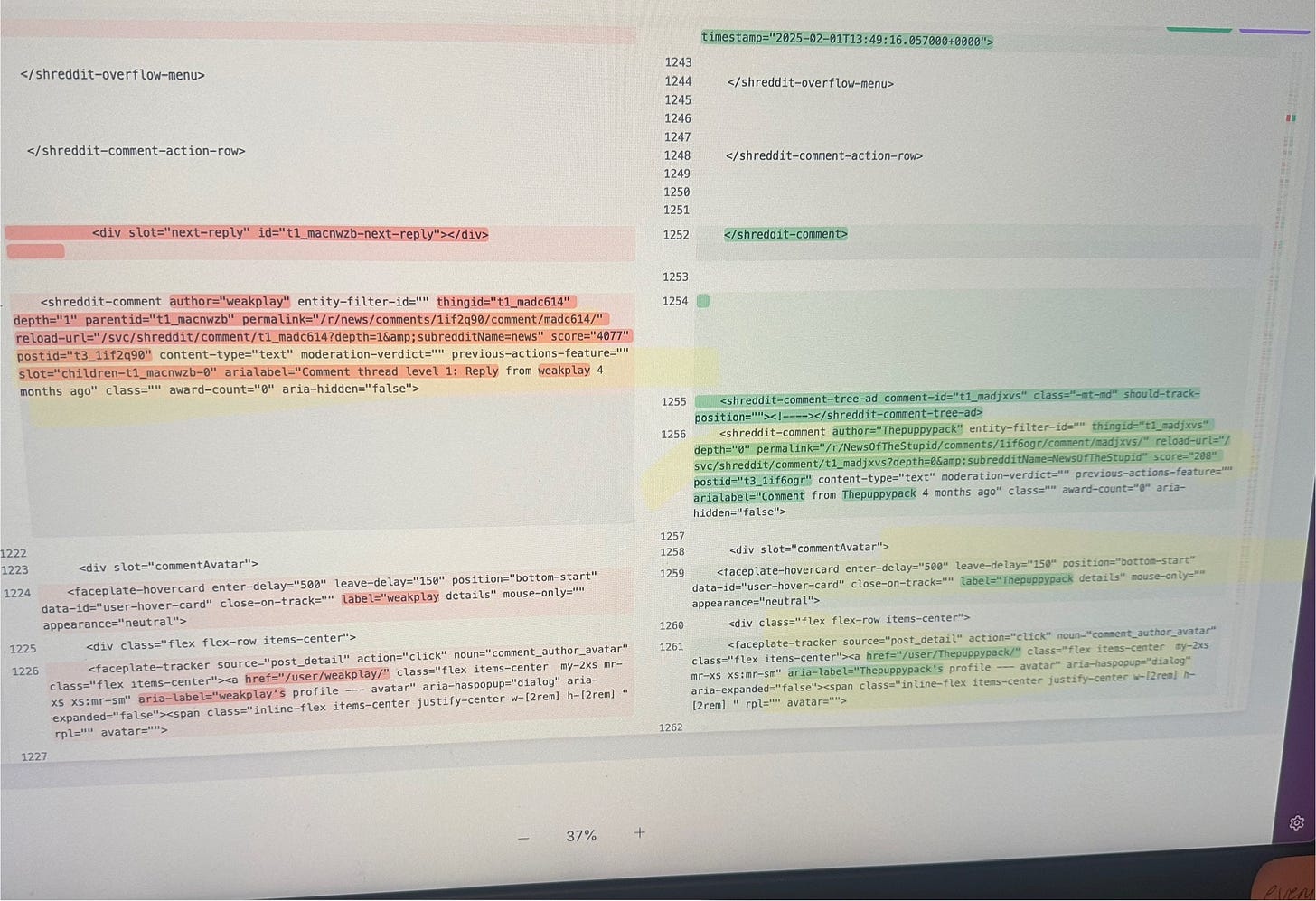 DOM MutationObservers revealed that comments critical of government contracts or surveillance were instantly hidden.